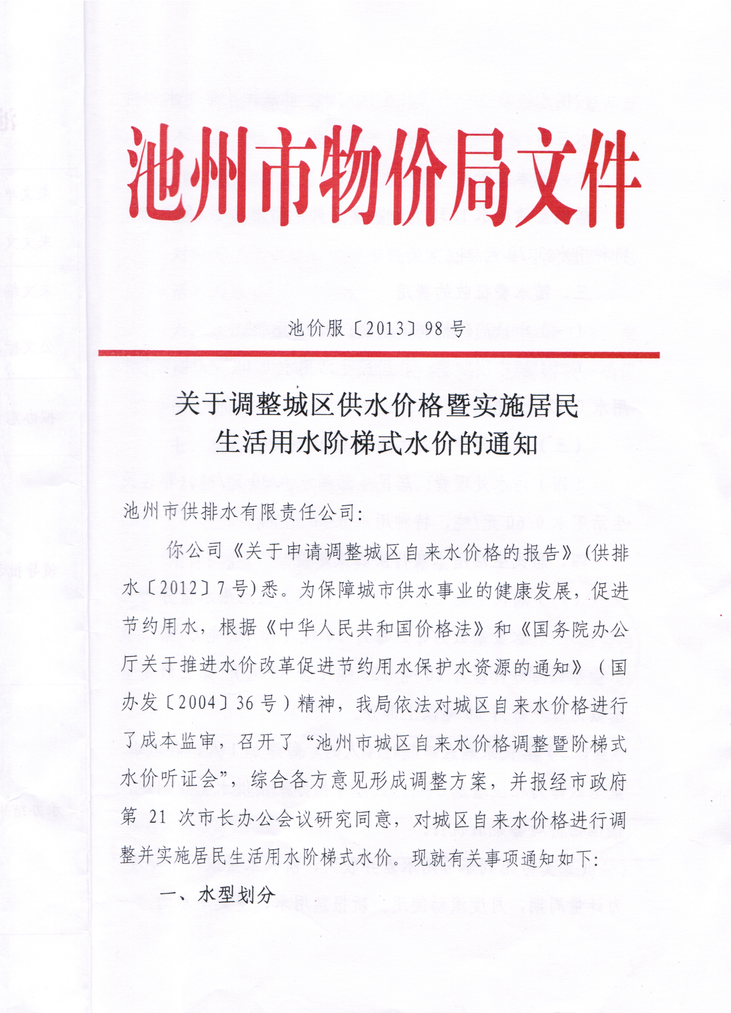 | 關(guān)于調(diào)整城區(qū)供水價(jià)格暨實(shí)施居民生活用水階梯式水價(jià)的通知 | |