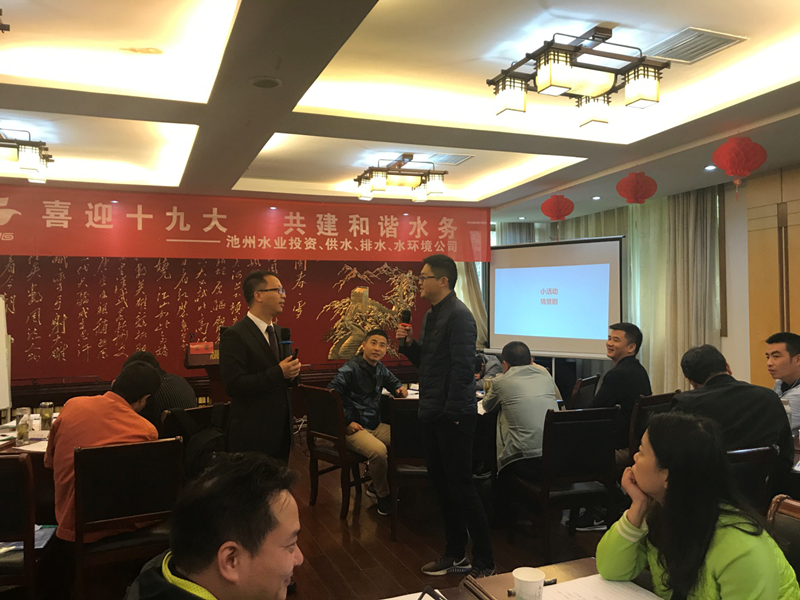 為慶祝黨的十九大勝利召開(kāi),深入學(xué)習(xí)領(lǐng)會(huì)十九大精神,接受紅色教育,提升管理人員的團(tuán)隊(duì)意識(shí)和溝通技巧,近日,池州市水業(yè)公司、供水公司、排水公司、水環(huán)境公司聯(lián)合舉辦“喜迎十九大 共建和諧水務(wù)”中層及以上管理人員拓展培訓(xùn),來(lái)自四家公司共50余名中、高層管理人員利用周末時(shí)間分二批次參加了培訓(xùn)。