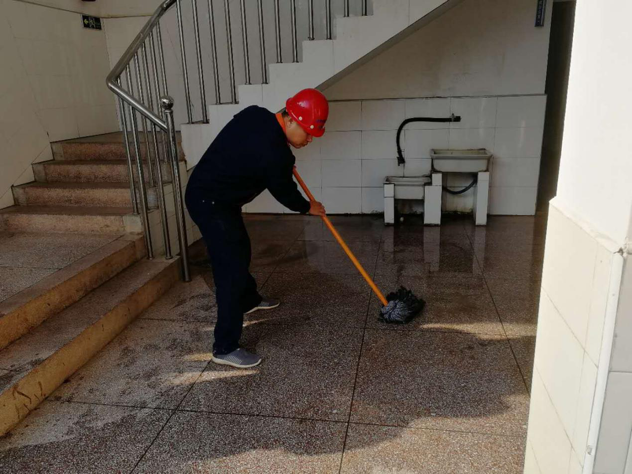 上午九時,志愿者們首先來到學(xué)校的水房,這是他們此行的主要服務(wù)項目。水池已經(jīng)年久失修,水管生銹,龍頭松動,總是有水流出,既浪費了水資源,還使整個水池周圍的地面濕滑,造成了一定的安全隱患?吹竭@種情況,志愿服務(wù)隊的工作人員二話不說,拿起了拖布就開始拖地,把整個水房的地面清理的一塵不染。服務(wù)隊員不怕臟不怕累,徒手對老化的水管進行了維修,換掉了老舊的水龍頭,還用膠布把接頭部分進行纏繞,以免日久再有漏水的現(xiàn)象。大家相互配合,做事有條不紊,盡心盡力地把服務(wù)工作做好,像給自家做事一樣認真負責(zé)。