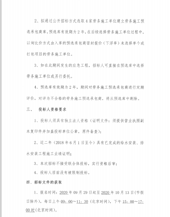 池州市供水有限公司、池州市水務工程有限公司按照相關(guān)采購管理規(guī)定的要求,規(guī)范公司承接業(yè)務勞務分包的管理,現(xiàn)就本公司勞務施工預選承包商招標組織公開招標。
