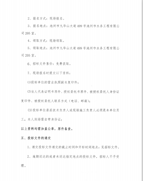3、報名地點:池州市九華山大道499號池州市水務工程有限公司205室。