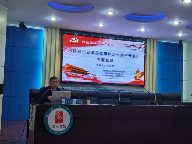 12月8日下午,池州建投集團黨委副書記方長根同志前往聯(lián)系點支部——市水業(yè)、供水、排水、水環(huán)境四公司上專題黨課,近80名黨員參加了本次學習。會議由供水公司支部書記、董事長楊觀樂同志主持。