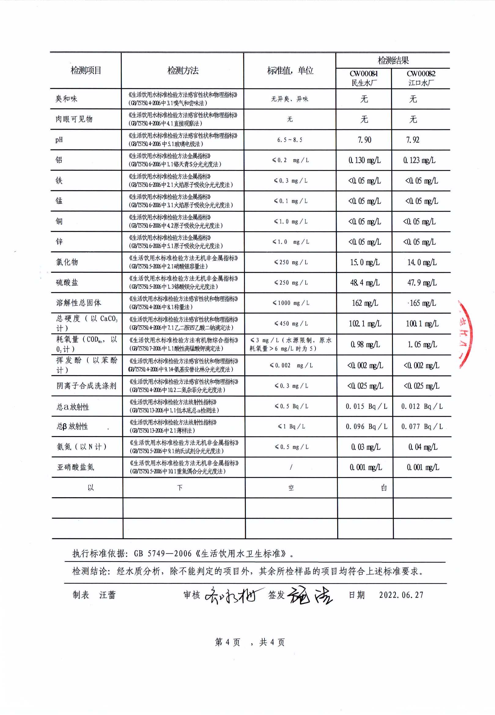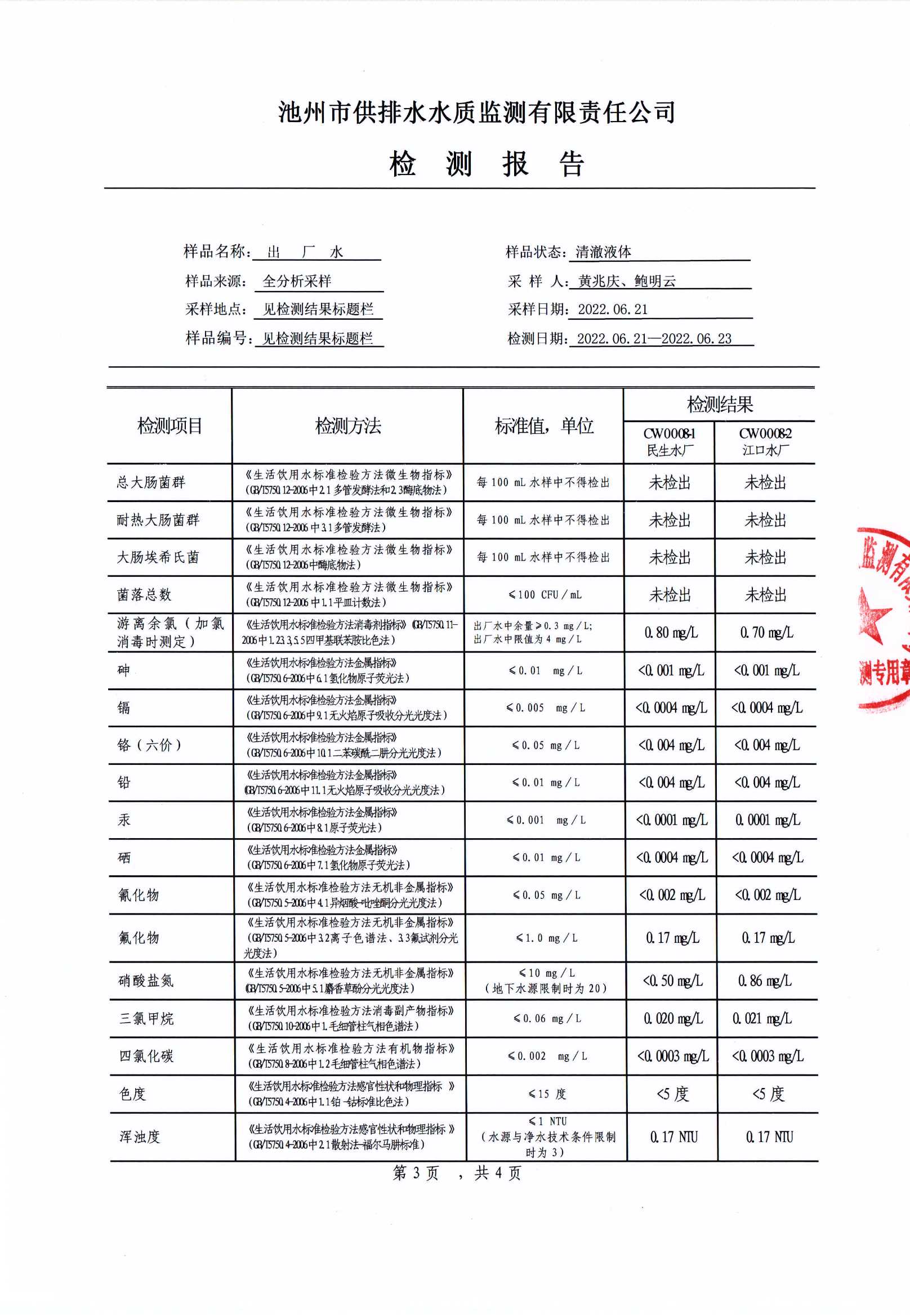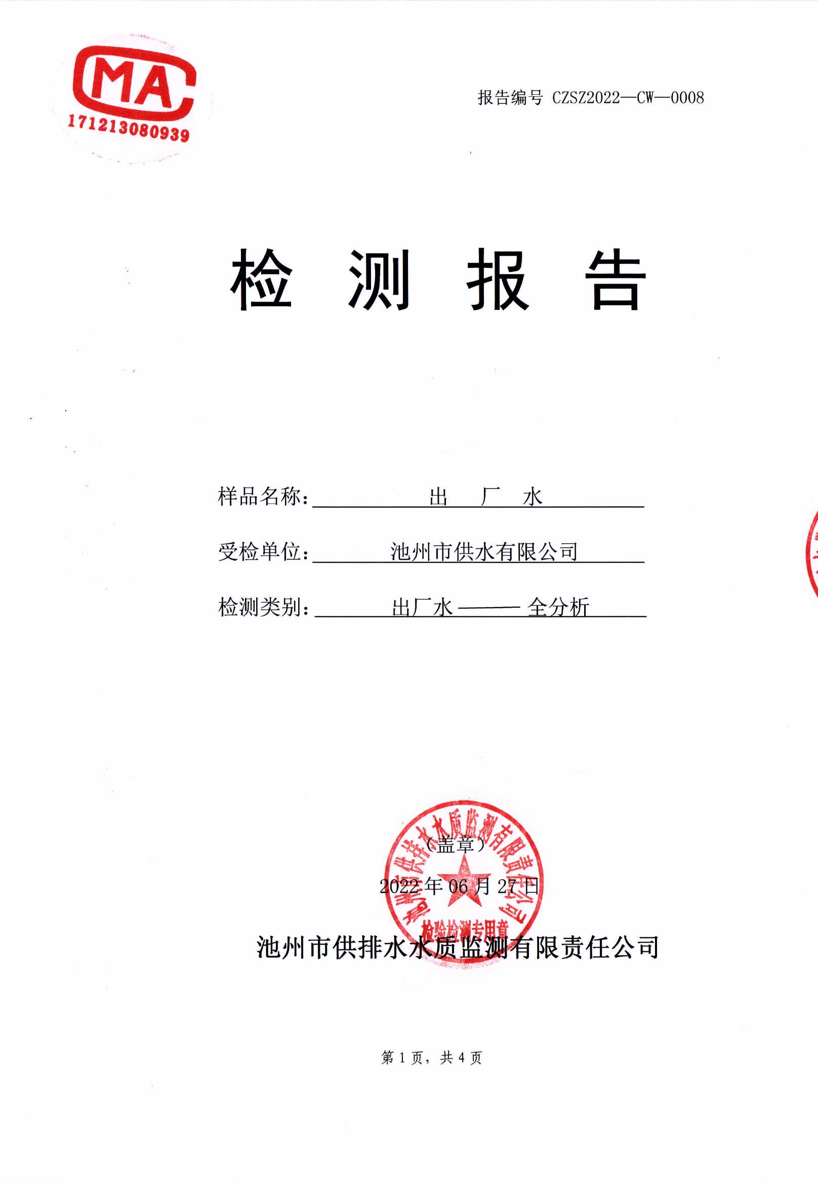 | 池州市供水有限公司出廠水(全分析)檢測(cè)報(bào)告(2022.07.14) | |