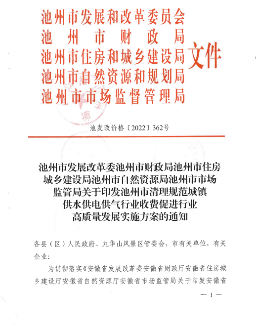 供氣行業(yè)收費(fèi),優(yōu)化營商環(huán)境,現(xiàn)將《池州市清理規(guī)范城鎮(zhèn)供水 供電供氣行業(yè)收費(fèi)促進(jìn)行業(yè)高質(zhì)量發(fā)展實(shí)施方案》印發(fā)給你們, 請(qǐng)認(rèn)真組織實(shí)施。