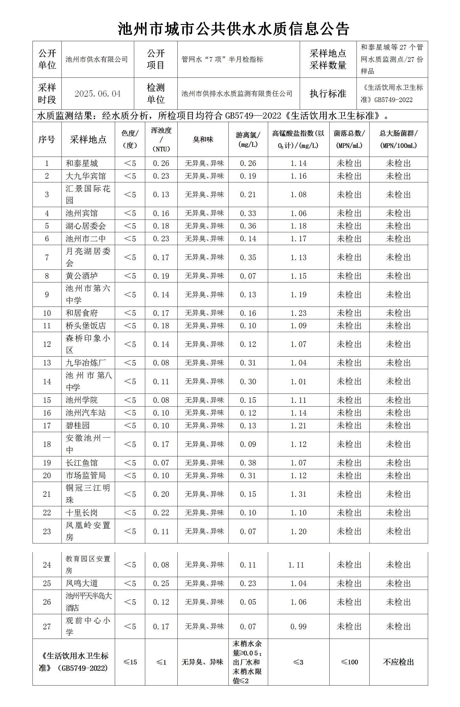 | 池州市城市公共供水水質(zhì)信息公告管網(wǎng)水“7項(xiàng)”半月檢指標(biāo)6-1 | |