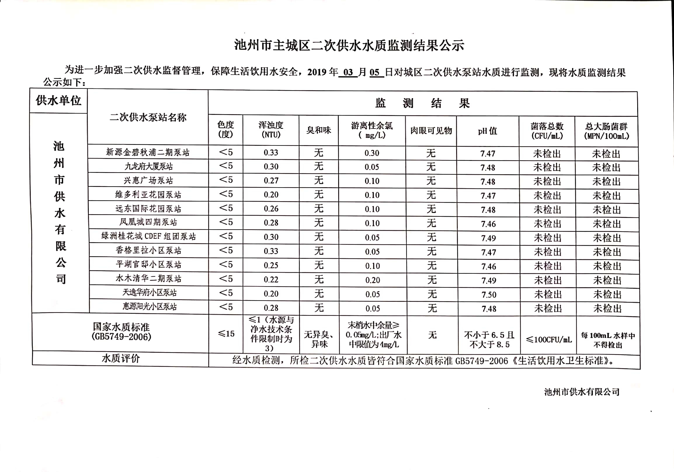 | 池州市主城區(qū)二次供水水質監(jiān)測結果公示(2019.04.12) | |
