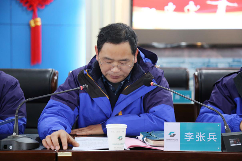 總經理李張兵作《迎難而上 創(chuàng)新實干 譜寫新格局下健康發(fā)展新篇章》年度工作報告,從突出供水主業(yè)、內部管理、重點工作、文化建設、黨建引領等五個方面,全面回顧、總結公司2020年各項工作取得的新成果。他指出2020年公司售水量突破3000萬噸歷史大關,產銷差率取得10.93%的歷史最好成績,69座老舊小區(qū)二次供水泵站改造提前完成,城鄉(xiāng)供水一體化發(fā)展取得新突破,公司喜獲安徽省第十二屆文明單位、第四屆池州市市長質量獎提名獎、2019年池州市雙擁優(yōu)秀單位等榮譽稱號,公司黨支部黨建品牌摘得市屬國有企業(yè)黨建品牌評審大賽一等獎桂冠,公司發(fā)展呈現(xiàn)一派新氣象;同時,他指出公司仍然面臨外部環(huán)境不確定、內部活力待進一步激發(fā)等的困難和挑戰(zhàn)。他要求,2021年,公司上下要勠力同心、堅定信念、保持定力,不斷提升經營管理、供水保障、用戶服務、業(yè)務拓展、創(chuàng)新發(fā)展能力,實施“131”工程,即推動一項核心(水價調整)、推進三項改革(機構、薪酬和績效改革)、實施水源地保護工程等,他從六個方面全面部署了公司2021年各項工作及核心任務。