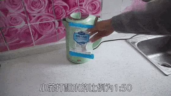 小蘇打除水垢:在用水壺燒水時,放一小匙小蘇打(比例為1:50),燒沸幾分鐘,水垢即除。