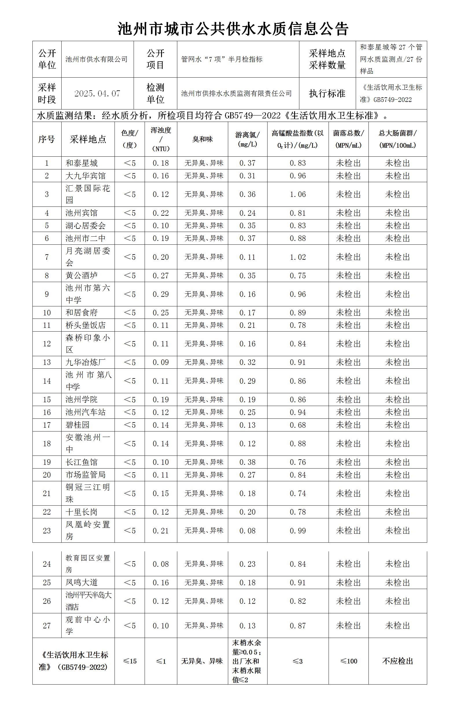 | 池州市城市公共供水水質(zhì)信息公告管網(wǎng)水“7項(xiàng)”半月檢指標(biāo)4-1 | |