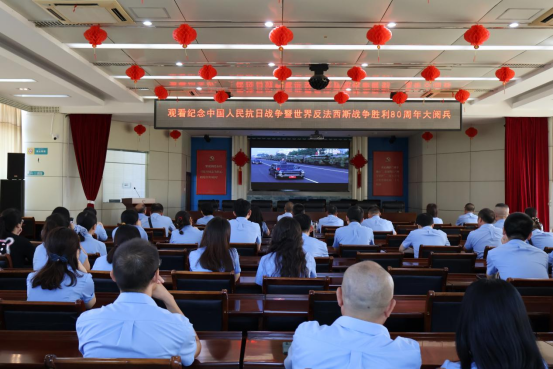 2025年9月3日上午9時,池州供水公司組織全體員工集中觀看紀念中國人民抗日戰(zhàn)爭暨世界反法西斯戰(zhàn)爭勝利80周年大閱兵現(xiàn)場直播。此刻,天安門廣場上氣氛莊重?zé)崃遥娏嘘,鐵甲生輝,莊嚴熱烈的氣氛通過屏幕感染著每一位在場員工。